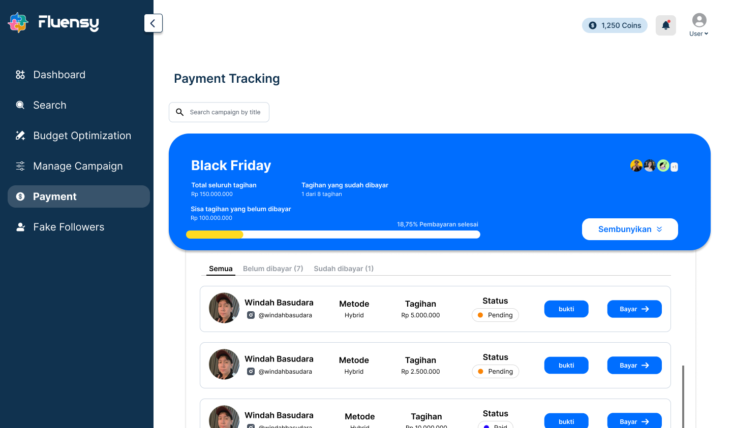 Dari pencarian influencer hingga evaluasi performa, seluruh proses terintegrasi dalam satu sistem.